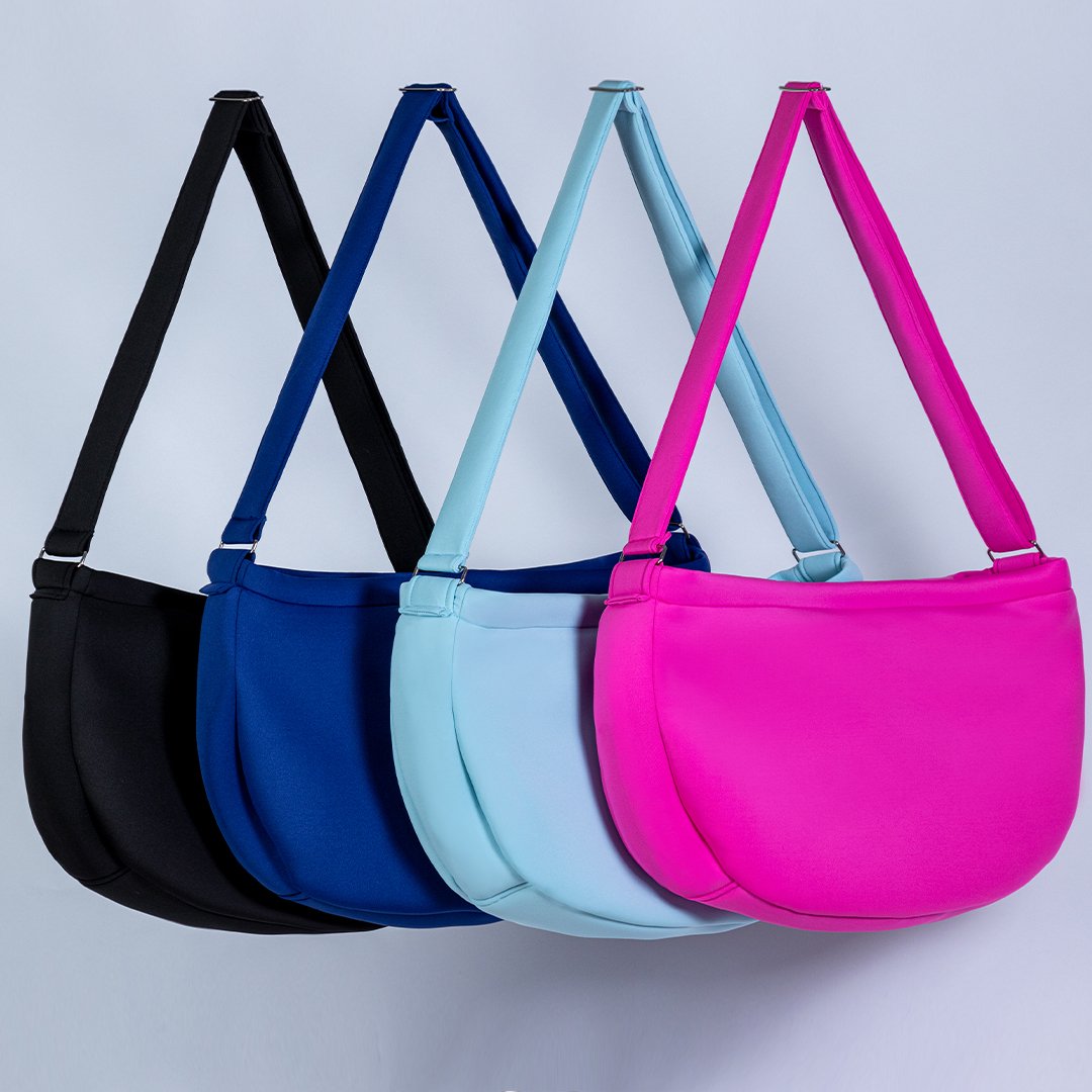 "The Signature Dog Sling is the latest and greatest way to keep your doggie comfortable anywhere you go, with twelve vibrant different colors to choose from; You'll be the talk of the town sporting one of these colorful pouches at your side. Its interior is lined with a soft faux cuddle mink fabric, with a satin pocket and a YKK zipper. Exterior material is made form neoprene fabric it's durable, machine washable and will keep your puppy warm by keeping out the chill. Gentle cycle to wash, no bleach or softener. Air dry or tumble low.  Sling features interior satin pocket, adjustable shoulder strap and interior safety tether. Available in 12 colors Measurements - 18"" L x 4"" W x 12"" H MSRP - $196.00 *Slings are handmade, sizes may vary slightly. Made in USA."