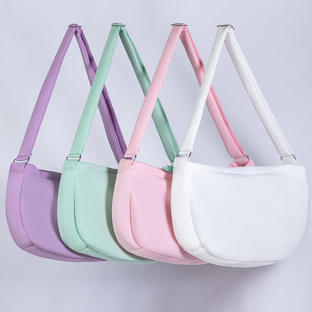 "The Signature Dog Sling is the latest and greatest way to keep your doggie comfortable anywhere you go, with twelve vibrant different colors to choose from; You'll be the talk of the town sporting one of these colorful pouches at your side. Its interior is lined with a soft faux cuddle mink fabric, with a satin pocket and a YKK zipper. Exterior material is made form neoprene fabric it's durable, machine washable and will keep your puppy warm by keeping out the chill. Gentle cycle to wash, no bleach or softener. Air dry or tumble low.  Sling features interior satin pocket, adjustable shoulder strap and interior safety tether. Available in 12 colors Measurements - 18"" L x 4"" W x 12"" H MSRP - $196.00 *Slings are handmade, sizes may vary slightly. Made in USA."
