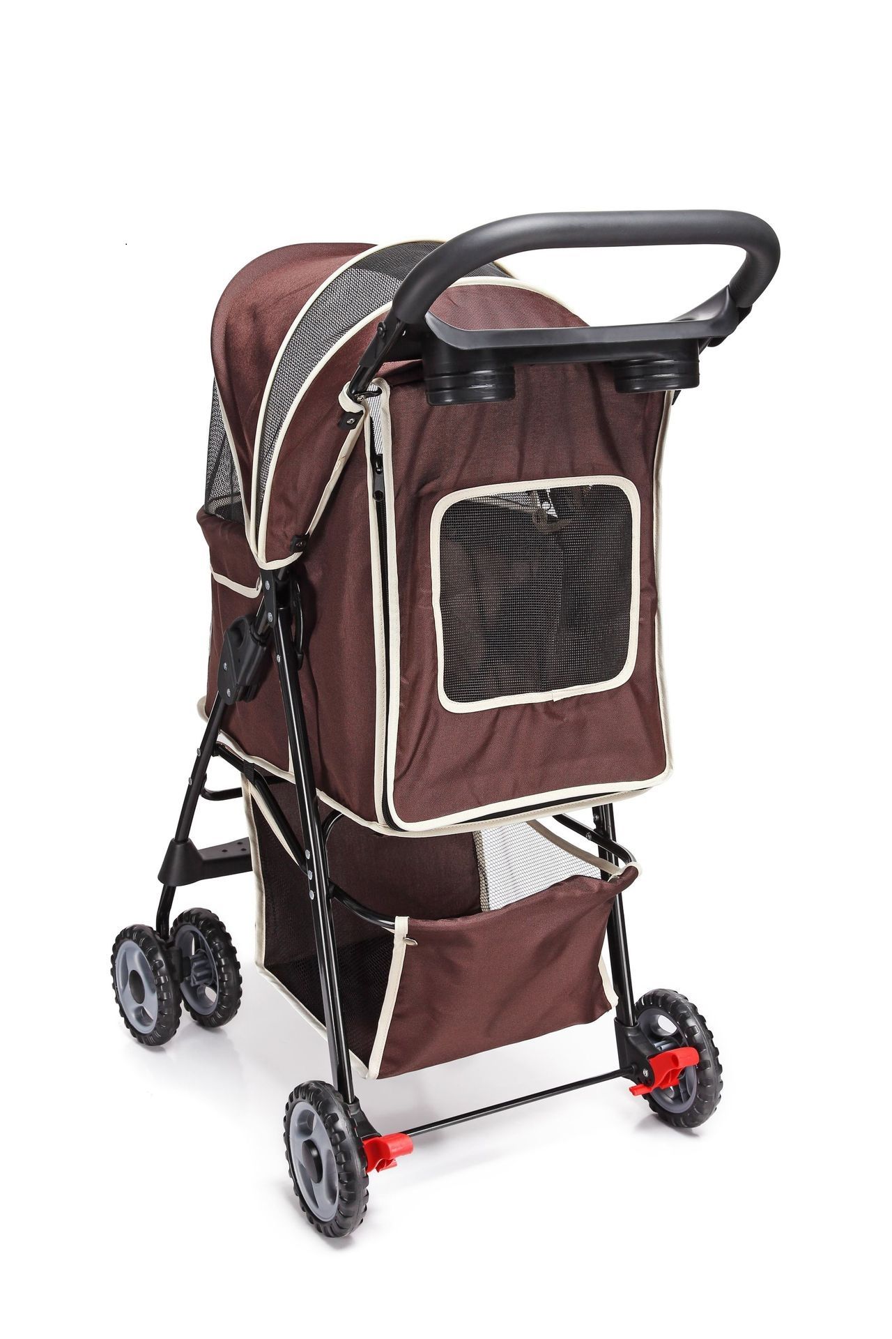 Home > Pet Dog Stroller Trolley, Foldable Travel Carriage with Wheels Zipper Entry Cup Holder Storage Basket, Pushchair Pram Jogger Cart