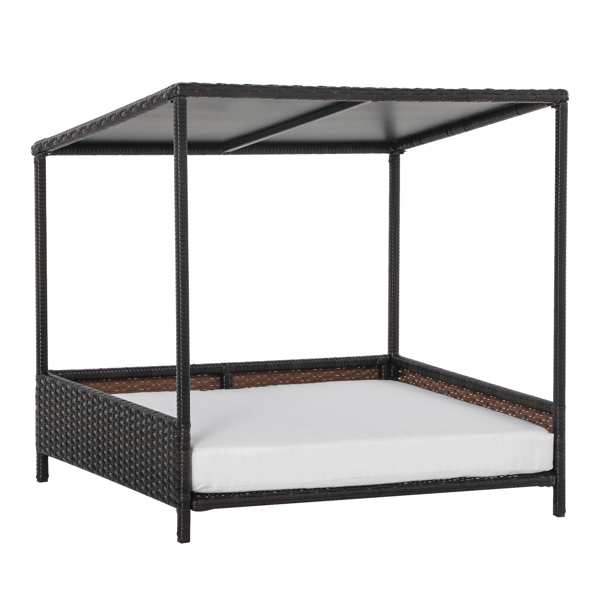 PawHut Wicker Dog House Raised Rattan Pet Sofa with Cushion for Indoor Outdoor Brown