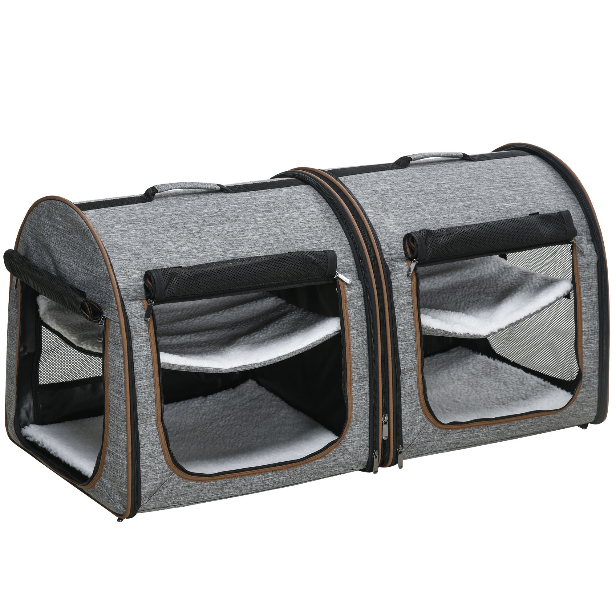 Home > PawHut 39" Portable Twin Compartment Show House Cat Cage/Condo, Soft-Sided Pet kennel, Dual Compartment, Soft Cushions & Storage Bag, Gray
